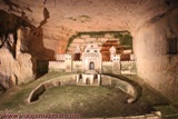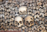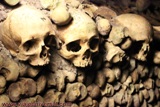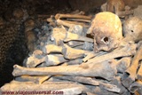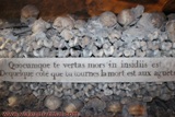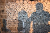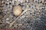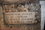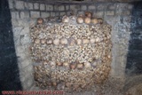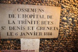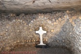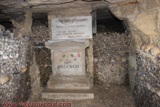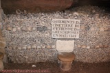 Seguimos el camino y llegamos a la Cripta de Sacellum, aquí la galería se amplia alrededor de un altar que imita a una antigua tumba. A la izquierda hay una placa que recuerda las primeras osamentas trasladadas del cementerio de los Inocentes en abril de 1786.