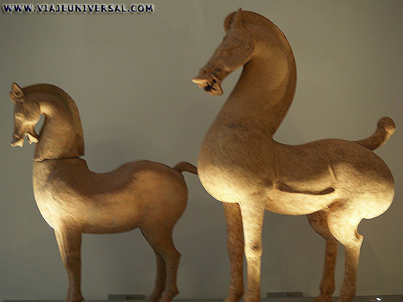 Caballos dinastía Han procede de China en Museo Guimet de París, Francia