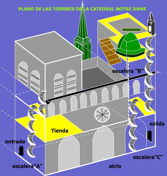 La Catedral de París esta formada por dos torres con una altura de 69 metros dando un aspecto espigado y monumental de todo el conjunto.