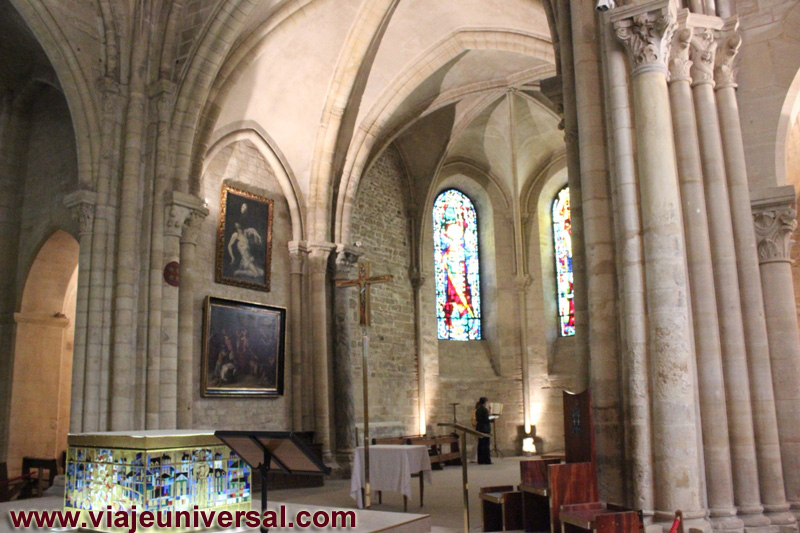 El interior, la iglesia tiene una planta de cruz latina dividida en tres naves y un crucero, el ábside es de estilo románico con una bóveda gótica de crucería del siglo XV, y con capillas laterales añadidas en el siglo XVIII.