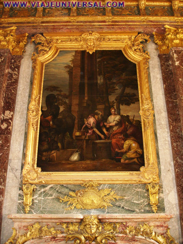 El salón de Hércules contiene el cuadro del tema Biblico llamado" Elizaber y Rebeca· tamaño 2,4 x 3,66 por Jacques Verbeckt y Paolo Caliari
