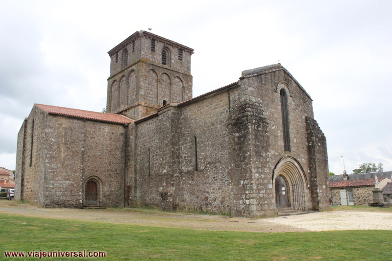 La iglesia de Notre Dame fue construida entre 1047 y 1066 en la época que fue nombrado Zacharie II como señor de Pouzauges. En sus comienzos formaba parte de un monasterio del priorato de San Juan, en esos momentos se diseñó como una iglesia muy simple con la nave y el ábside, con el paso del tiempo en el siglo XII se amplio con forma de cruz latina y la techumbre es sustituida por una bóveda. En el siglo XIV el ábside del coro es sustituido por una bahía recta que ocupa la parte baja de la torre. Tiene varia torres circulares que nos indican que también tuvo un carácter defensivo.