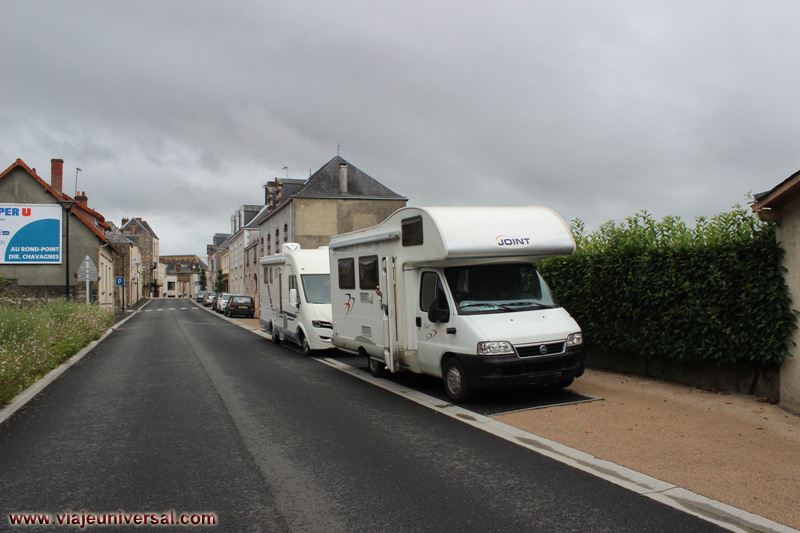 El parking para autocaravanas en Pouzauges cercano al ayuntamiento se encuentra en plena calle. Las coordenadas GPS del lugar corresponden con: N 46.78265 // W 0.83987.
