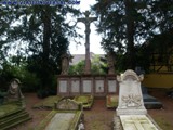 En el exterior se encuentra el cementerio de los Sacerdotes, se hallan las tumbas de los religiosos de la iglesia desde el siglo XV hasta 1935. Las tumbas se localizan a la sombra de una inmensa sequoia de 1856.