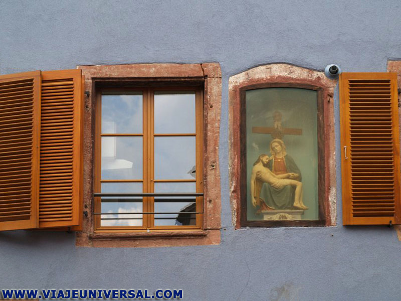 Sobre una de las casas alsacianas de Ribauvillé, en la parte más alta de la ciudad se halla el típico humilladero que representa a la virgen de la Piedad, fue construido en 1788.