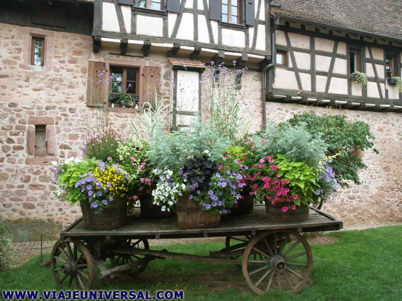 En la parte alta de la ciudad se encuentra Cour des Bergers de Riquewihr, es la calle que bordea toda la ciudad y se halla limitada por la muralla, aquí las casas típicas alsacianas se levantaron con sillería de piedra rosa y madera sustituyendo en algunas partes al adobe. |