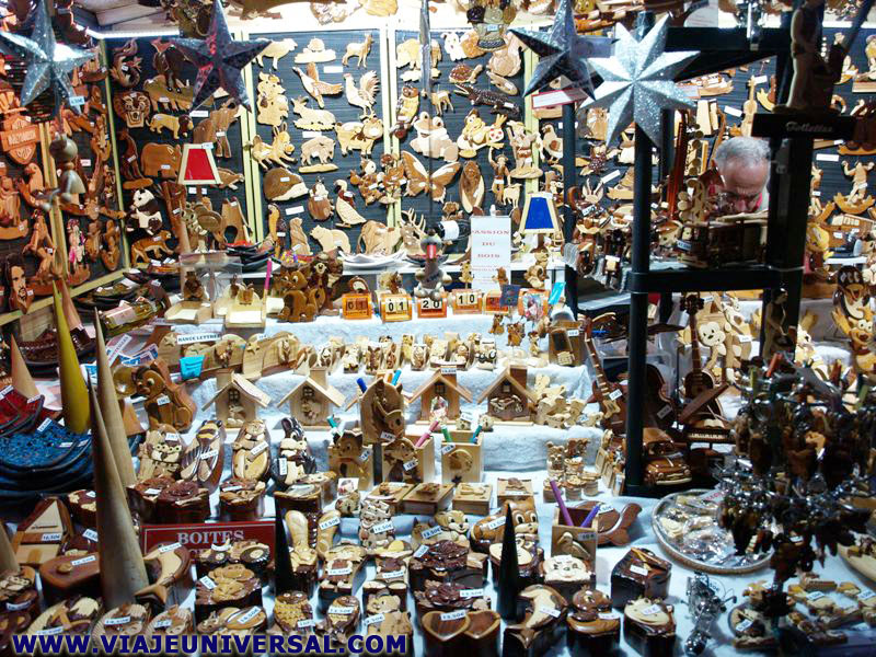El mercadillo se encuentra situado en la rue des Remparts, se halla a la izquierda, un poco antes de atravesar la puerta principal de la ciudad que se atraviesa por un arco en el Hôtel de Ville. Las casetas venden gran variedad de objetos de artesanía: figuras de cera con motivos navideños, dulces de frutas de Morgane, instrumentos de música del mundo, vinos y cavas de la zona, objetos de artesanía en madera, bolas de navidad en cristal, lámparas con motivos navideños, embutidos y salazones. etc. |