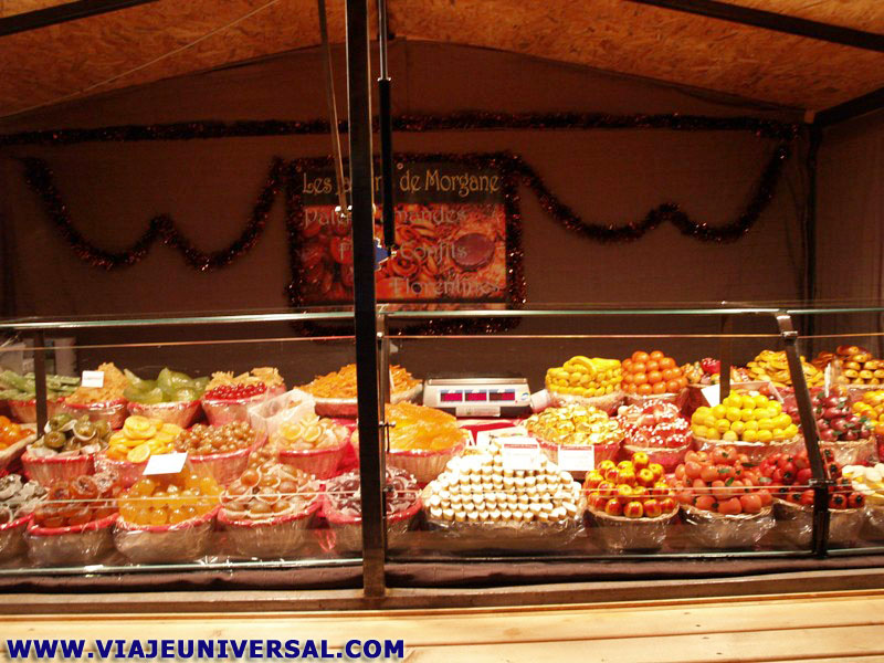 El mercadillo se encuentra situado en la rue des Remparts, se halla a la izquierda, un poco antes de atravesar la puerta principal de la ciudad que se atraviesa por un arco en el Hôtel de Ville. Las casetas venden gran variedad de objetos de artesanía: figuras de cera con motivos navideños, dulces de frutas de Morgane, instrumentos de música del mundo, vinos y cavas de la zona, objetos de artesanía en madera, bolas de navidad en cristal, lámparas con motivos navideños, embutidos y salazones. etc.