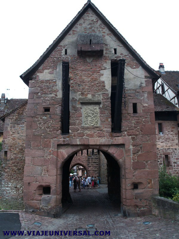 La Puerta Alta o Porte Haute se halla situada en el Norte de la ciudad, fue construida a finales del siglo XIII, después fue agrandada e integrada dentro del sistema defensivo de la ciudad. Tiene forma de una casa construida con sillares de piedra de la que cuelga el puente levadizo, se abre mediante un arco de medio punto con una importa cuadrada, sobre esta el escudo de la ciudad. Adosada se encuentra la segunda muralla con que el duque de Wurtemberg, señor de Riquewihr quiso dotar a la ciudad para aumentar su seguridad. |