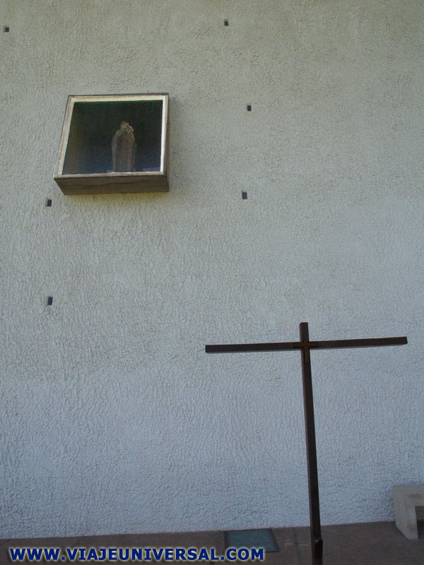 La iglesia se halla situada sobre un promontorio que impide la visión del edificio. Una vez coronado el casco de la capilla emerge junto con su gran torre como si se tratase de un barco en alta mar, que es azotado por una marea imaginaria. En esta caso la gran torre blanca que hace de faro para la llamada de los peregrinos. No hay que olvidar que pese a ser una lugar de culto entre los aficionados a la arquitectura no deja de ser una ermita de peregrinación católica.