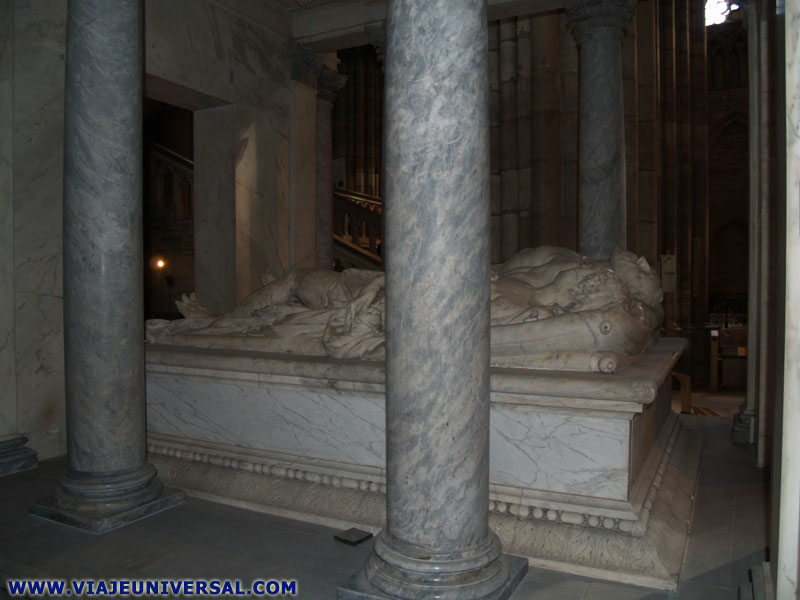 Las tumbas se encuentran distribuidas en el crucero sur: la capilla de San Luis de 16 yacentes, de los que subsisten 14, data aproximadamente de 1263.