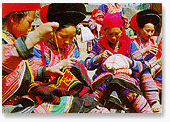 Economía: El H'Mong viven principalmente de la roza o quema del cultivo. También plantan el arroz y el maíz en campos colgantes. Sus plantaciones principales del alimento son maíz, arroz, y centeno. Aparte de estas cosechas, también crecen las plantas medicinales y las plantas de lino para proveer las fibras para tejer el paño. |