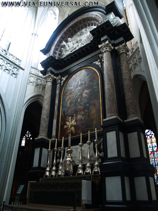 Pocas veces podemos contemplar en el interior de una catedral tantas obras de arte juntas que podríamos denominar que es un museo dentro de una catedral. Destacan el interior donde se exhiben cuatro grandes obras de Peter Paul Rubens: “ La Subida a la Cruz ” (1610), tríptico de extraordinarias dimensiones 460 x 340 cm., el panel central y 460 x 150 cm. de los paneles laterales, esta obra fue originalmente pintada para el altar Mayor de la desaparecida iglesia Walburga; “ La Asunción de la Virgen (1626) con unas dimensiones de 490 x 325 cm., el lienzo fue pintado por Rubens en el propio altar de la catedral que ocupa en la actualidad;” La Resurrección de Cristo (1612) panel de 138 x 98 cm. (central) y 136x40 cm. (laterales), fue contratado por la familia Moretus y Plantin para decorar su capilla familiar; “El Descendimiento de la Cruz ” (1612) con unas dimensiones de 421 x 311 cm. (panel central) y 421 x 153 cm. (paneles laterales) aquí se representa “ la Visitación ” y “ la Presentación ” en el templo según el Evangelio de San Juan, fue diseñado por Rubens expresamente para este altar y sufragado por el gremio de los arcabuceros, dado que su patrón San Cristóbal lleva al niño Jesús, este cuadro es considerado como una de las siete maravillas de Bélgica, fue pintado en un año tiempo record para sus dimensiones.