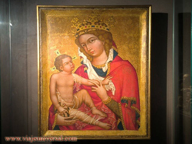 Museo catedralicio de Brno |  La estrella del museo es el cuadro de la Madonna de Veverí es una obra maestra del arte gótico checo creada entre 1344 y 1350 por un artista anónimo conocido como el Maestro del Retablo de Vyšší Brod. Fue encargada por el margrave Juan Enrique de Luxemburgo para la capilla de la Asunción de la Virgen, ubicada junto al castillo de Veverí, cerca de Brno. Esta pintura en temple y oro sobre panel de pino mide aproximadamente 79,5 × 62,5 cm y representa a la Virgen María en media figura, sosteniendo al Niño Jesús en su regazo.  El Niño sostiene un jilguero, símbolo de la Pasión de Cristo, que remite a la corona de espinas y al sufrimiento divino. La obra refleja una fusión estilística sofisticada: influencias bizantino-italianas adaptadas al gótico checo, con detalles como la doble corona de la Virgen y su cabello suelto sin velo, que enfatizan su estatus y pureza. Además, cada elemento de la pintura —los gestos, los colores y la mirada— está cargado de simbolismo religioso y destinado a la meditación devocional.  Durante siglos permaneció en la capilla del castillo y, tras un periodo de restauración y conflictos legales entre la iglesia y la Galería Nacional, finalmente fue trasladada en 2016 al Museo Diocesano de Brno, donde se exhibe en condiciones controladas de clima y seguridad. Hoy, la Madonna de Veverí es uno de los exponados emblemáticos del museo, apreciada tanto por su valor artístico como por su profundo significado espiritual, representando una pieza clave del patrimonio gótico de Moravia.