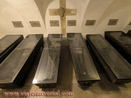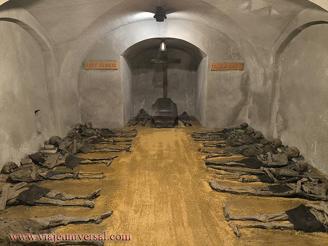 Cripta del Monasterio de los Monje Capuchinos de Brno |  Sin embargo, fue su famosa cripta la que le dio al monasterio su verdadera fama donde los cuerpos de las personas enterradas allí se convirtieron en momias debido a la composición geológica del suelo y al sistema de ventilación. Cerca de la entrada de la cripta descansa el cuerpo y las reliquias de Santa Clementina, una antigua noble romana.