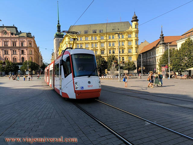 Calles de Brno |  El día 14 comienza en el parking de Telc, la noche ha sido muy calurosa, pero de madrugada ha refrescado, suficiente para echarnos la sábana por encima.  Nuestro siguiente destino es la ciudad de Brno, es la segunda en importancia después de Praga, la llaman La Praga Chica.  El trayecto entre Telc y Brno es una de las rutas más agradables de recorrer en la región sur de la República Checa. La distancia es de unos 120 kilómetros aproximadamente y, en coche, el viaje dura alrededor de una hora y media. El camino atraviesa colinas suaves, campos cultivados, bosques y pequeños pueblos rurales, lo que convierte el desplazamiento en una experiencia visual muy relajante. La zona pertenece al sur de Moravia, una región conocida por sus paisajes tranquilos, sus pueblos medievales y sus tradiciones vinícolas. Durante el recorrido se pueden encontrar rincones con estanques rodeados de vegetación, iglesias góticas y casas con fachadas históricas que recuerdan escenas de un cuento de hadas. Aunque conducir es la opción más rápida y flexible, con la posibilidad de hacer paradas para explorar lugares como Slavonice o desviarse hacia las famosas cuevas kársticas de Moravia, también existe la opción del transporte público. El autobús conecta Telc con Brno en casi dos horas y es una alternativa económica, mientras que el tren requiere transbordos y tarda cerca de cuatro horas, por lo que resulta menos conveniente. En cualquier caso, el viaje es una oportunidad para descubrir la belleza serena de la campiña checa y disfrutar de la mezcla de naturaleza y patrimonio que caracteriza esta parte del país.