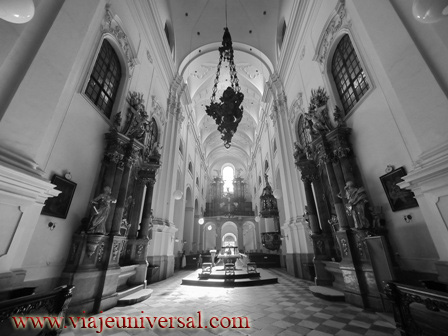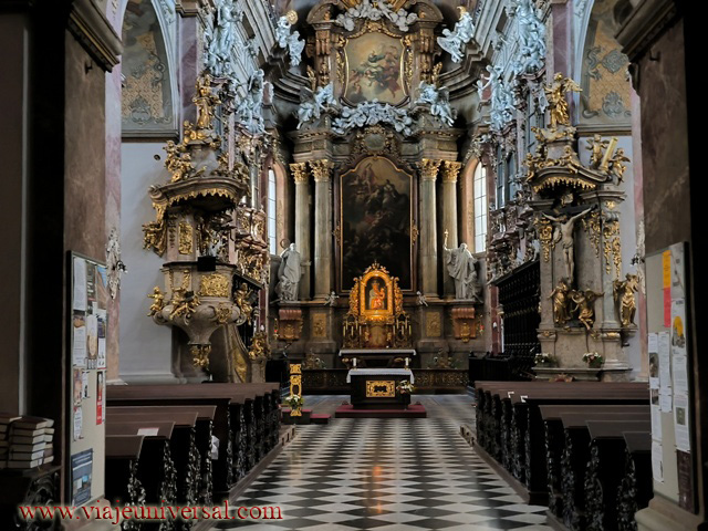 Iglesia de la Asunción de la Virgen María de Brno |  Seguimos caminando hacia otra de las iglesias la de la Asunción de la Virgen María o Kostel Nanebevzetí Panny Marie GPS N 49.1967446 E16.6099578, se encuentra en el histórico barrio de Staré Brno, en la plaza Mendlovo námestí, y es uno de los templos más importantes de la ciudad tanto por su valor arquitectónico como por su relevancia espiritual. Fundada en 1323 por la reina Eliška Rejcka, viuda del rey Václav II, la iglesia formaba parte de un complejo conventual cisterciense que incluía el monasterio de Staré Brno. Desde su construcción, el templo ha sido un centro de vida religiosa, cultural y educativa, y a lo largo de los siglos ha experimentado múltiples transformaciones que reflejan la historia de la ciudad y de la Iglesia en Moravia.  El edificio combina elementos góticos originales con añadidos barrocos del siglo XVIII, época en la que se construyó el monumental altar mayor, obra maestra del barroco que alberga una réplica de la pintura de la Virgen María de la basílica romana de Santa María la Mayor. Destaca también la imagen de la Virgen Negra, coronada solemnemente en 1736, que se ha convertido en un objeto central de devoción para los fieles de Brno. La tumba de la reina fundadora, marcada con una sencilla “E” coronada en el pavimento, permite conectar con la memoria de quienes hicieron posible la existencia de este templo.