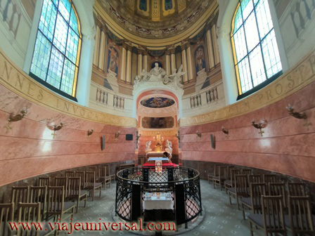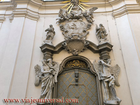 Monasterio de los Monje Capuchinos de Brno |  Aristócratas y ricos comerciantes incluso intentaban en ocasiones sobornar al abad para obtener el derecho a ser enterrados en la cripta del monasterio. Los laicos creían que ser enterrados junto a los monjes les garantizaría un lugar en el Cielo, ya que los capuchinos eran famosos por su recto estilo de vida ascético; incluso en invierno se les podía ver descalzos por las calles de la ciudad, vestidos únicamente con una túnica ligera y la famosa capucha puntiaguda.  El monasterio fue construido a mediados del siglo XVII y es un ejemplo inusual de la arquitectura barroca tardía. El exterior del edificio se distingue por una increíble sobriedad y una ascética severidad de líneas y proporciones. La fachada está casi completamente desprovista de cualquier decoración; solo sobre la entrada principal hay un hermoso mosaico que representa el famoso sermón a los pájaros del fundador de la orden, San Francisco de Asís.  Sin embargo, tal simplicidad es engañosa: en cuanto se cruza el umbral, uno se encuentra en el interior del templo, que deslumbra con su lujo y belleza. La técnica de contrastar la sobriedad exterior con la riqueza interior de la decoración, magistralmente ejecutada por el arquitecto del monasterio, pretendía no solo asombrar a los visitantes, sino también recordarles la fragilidad y la fugacidad de la vida terrenal y la belleza del Reino de los Cielos.