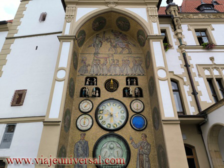 Reloj Astronómico de Olomouc |  Se trata de uno de los relojes astronómicos más singulares de Europa Central. Su origen se remonta a la Edad Media, pero el mecanismo y la decoración han sufrido múltiples transformaciones a lo largo de los siglos. Durante la Segunda Guerra Mundial quedó gravemente dañado y, en la posguerra, en lugar de reconstruirse siguiendo la tradición medieval o renacentista, fue rediseñado en estilo realista socialista.  Hoy el reloj muestra un mosaico colorido con figuras de campesinos, obreros, científicos, atletas y madres con niños, en lugar de los santos y reyes que suelen verse en otros relojes astronómicos. El mecanismo marca las horas, los días del año, los signos zodiacales, el calendario agrícola y festivo, además de ofrecer un carrillón en el que desfilan pequeñas figuras al mediodía.  El contraste entre la torre gótica-renacentista del Ayuntamiento y la estética socialista del reloj lo convierte en una pieza única, mezcla de tradición e ideología, y en una de las curiosidades más fotografiadas de Olomouc, es la única oportunidad del día que funciona. Está al cuidado de la única familia alemana que vive en la ciudad.