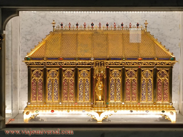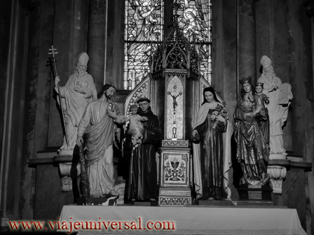 Relicario Catedral de San Wenceslao de Olomouc |  Los pilares góticos provienen del siglo XIII. El presbiterio ancho de las dimensiones 35 x 23m fue construido en estilo del barroco temprano. A finales del siglo XIX recibió, como todo el edificio, el carácter neogótico. Debajo del presbiterio hay una cripta. En la parte meridional hay entrada a la capilla manierista de San Estanislao. Por los lados de la entrada a la capilla hay dos sepulcros del siglo XVI y XVII. En un altar neogótico, cerca de uno de los pilares, está colocado el relicario con restos de Juan Sarkander dicen que se pidió su santidad pero que el Papa lo negó porque su muerte tuvo un origen político.  Día 16 de Agosto (viernes) Ruta: Olomouc- Kutna Hora-Sazava