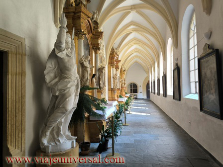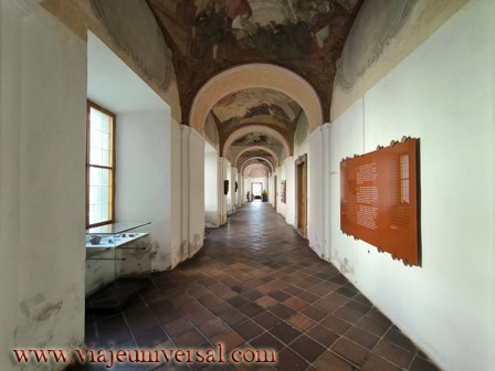 Claustro del Monasterio de Sázava |  El monasterio sufrió diversas etapas de esplendor y de decadencia a lo largo de los siglos. Fue destruido en 1421 durante las Guerras Husitas y permaneció en ruinas hasta su revitalización en el siglo XVII, cuando, bajo la recatolización impulsada por los Habsburgo, se reconstruyó en estilo barroco. Posteriormente, a finales del siglo XVIII, el emperador José II lo disolvió en 1785 como parte de sus reformas eclesiásticas. Desde entonces, los edificios pasaron por distintos usos y remodelaciones, con intervenciones neorrenacentistas en el siglo XIX.  Hoy en día, el complejo combina varios estilos arquitectónicos: restos góticos de los siglos XIII y XIV, reconstrucciones barrocas, añadidos posteriores y vestigios más antiguos. Entre los elementos más destacados se encuentra la basílica gótica de tres naves, que quedó inacabada, así como la sala capitular con murales medievales, el refectorio, el claustro y los restos de la iglesia de la Santa Cruz, construida hacia 1070. El monasterio se abre al público principalmente entre abril y octubre y ofrece visitas guiadas en varios idiomas, que permiten recorrer tanto los espacios monásticos como los jardines y las ruinas históricas.