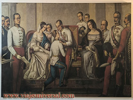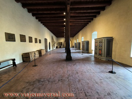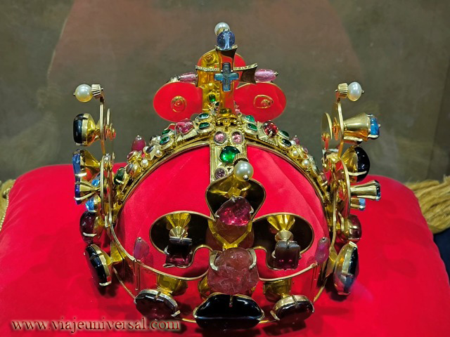 Sala del Castillo de Karlstein |  La entrada a los castillos del Patrimonio Checo, ya he explicado cuales son las condiciones, hay cuatro tipos de tour y optas por el que más te interesa: horario, idioma, etc.  Nosotros sacamos el tour n° 1, no era el más interesante, pero no quedaba otro. El más Interesante es el que recorre la capilla donde Carlos IV guardaba todos los tesoros del imperio.  La novedad que tenemos es que en este tour n,° 1, si permiten fotografiar, esto es importante porque me puedo centrar mejor en las explicaciones del guía.  El recorrido incluye los interiores históricos del primer y segundo piso del Palacio Imperial y el primer piso de la Torre Mariana con valiosos muebles de los siglos XIV al XIX (Salón de los Cortesanos, Salón de los Caballeros con la Capilla de San Nicolás, Patio de la Torre Mariana, Karlštejn Decanato del Castillo, Dormitorio del Emperador con la Capilla de San Wenceslao, Sala de Audiencias, Salón Real de los Ancestros y Salón de Banquetes, Tesoro del Castillo de Karlštejn y una antigua prisión del castillo en la planta baja de la Torre Mariana). En el Tesoro del Castillo se puede admirar una copia de la Corona de San Wenceslao, la corona medieval de los reyes de Bohemia).
