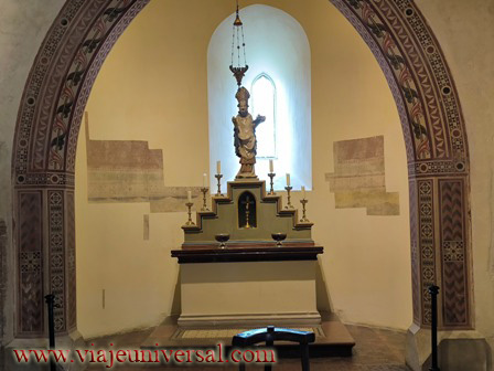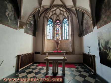 Capilla del Castillo de Karlstein |  La capilla de la Santa Cruz es, sin duda, el corazón espiritual y artístico del castillo. Su decoración es extraordinaria: las paredes están incrustadas con piedras semipreciosas que simbolizan la Jerusalén celestial, y las bóvedas se adornan con oro y motivos sacros. Allí se conservaba un tesoro de incalculable valor: fragmentos de la cruz de Cristo, reliquias de santos y los objetos más preciados del reino. Además, este espacio alberga una serie única de 129 paneles pintados por el maestro Teodorico de Praga, que representan a santos, profetas, reyes y figuras bíblicas en un conjunto considerado una de las cumbres del arte gótico europeo. Entrar en esta capilla, tras siglos de uso exclusivo y estrictamente controlado, supone hoy una experiencia casi mística.  El castillo de Karlštejn no estuvo ajeno a los avatares de la historia. Durante las guerras husitas en el siglo XV se reforzaron sus defensas, y aunque nunca llegó a ser tomado, vivió episodios de asedio e incertidumbre. Más adelante, en el Renacimiento y el Barroco, sufrió adaptaciones que lo transformaron en una residencia más cómoda, aunque con ello se alteró parte de su fisonomía original. Sin embargo, a finales del siglo XIX, en plena efervescencia del nacionalismo checo, se emprendió una gran restauración de estilo neogótico a cargo del arquitecto Josef Mocker. Este proyecto buscó devolver al castillo un aspecto idealizado, inspirado en la Edad Media, que consolidó la imagen que hoy tenemos de Karlštejn: majestuosa, solemne y profundamente ligada al reinado de Carlos IV.