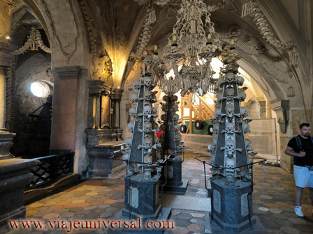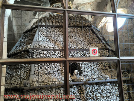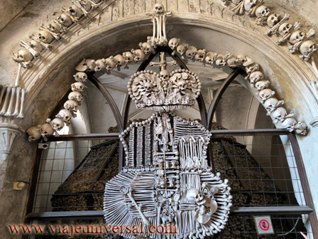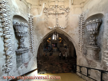 Osario de Sedlec Kutná Hora |  La primera parada es el barrio bajo donde se encuentra la iglesia de los muertos y la catedral. Sacamos un ticket para ver estos dos monumentos más la catedral del barrio alto.  Lo primero que visitamos es la capilla de los huesos Osario de Sedlec, es considerada la joya de Bohemia. El parking para visitarlo GPS N49.959100 E15.285988 .  A la entrada Osario de Sedlec GPS N49.9607969 E15.2897139, te indican la prohibición de fotografiar, todo lo que publicó son fotos robadas.  Hemos visitado multitud de capillas o iglesias con huesos, en Portugal son muy de huesos, pero nunca antes habíamos visto como las calaveras tratan de imitar elementos decorativos: candelabros, lámparas, escudos, tumbas de emperadores. Parecen elementos de mal gusto empleados de una forma muy especial.  Kostnice de Sedlec, conocida popularmente como la Capilla de los Huesos, es una de las creaciones más singulares de la República Checa y un ejemplo único de arte macabro europeo. Situada en Kutná Hora, a unos 80 kilómetros de Praga, forma parte del cementerio de la Iglesia de Todos los Santos, declarado Patrimonio de la Humanidad por la UNESCO. Su fama no solo se debe a la cantidad de huesos humanos que decoran sus paredes y techos, sino también al profundo simbolismo espiritual que encierra y a la maestría con la que fueron dispuestos para generar un efecto visual y simbólico impactante.