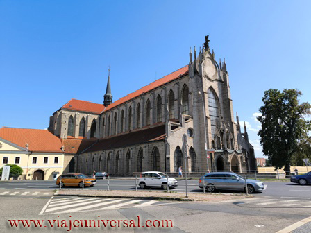 Iglesia de la Asunción de Nuestra Señora Kutná Hora |  Después vamos hasta la Iglesia de la Asunción de Nuestra Señora y San Juan el Bautista GPS N 49.9587961 E15.2798546 , es considerada catedral.  La Iglesia de la Asunción de Nuestra Señora y San Juan el Bautista, conocida en checo como Kostel Nanebevzetí Panny Marie a svatého Jana Krtitele, se encuentra en el barrio de Sedlec, en Kutná Hora, República Checa. Forma parte del antiguo monasterio cisterciense de Sedlec, el más antiguo de Bohemia, y está inscrita en la lista del Patrimonio de la Humanidad de la UNESCO junto con el centro histórico de Kutná Hora y la iglesia de Santa Bárbara. Su construcción comenzó alrededor de 1280, bajo los cistercienses, y se concluyó hacia 1320, convirtiéndose en uno de los primeros edificios góticos de la región. En 1421, durante las guerras husitas, el monasterio fue atacado y la iglesia quedó en ruinas, permaneciendo abandonada durante siglos. A principios del siglo XVIII se llevó a cabo una importante restauración dirigida por Jan Blažej Santini-Aichel, que fusionó de manera única elementos barrocos con la estructura gótica original, dando lugar al llamado estilo barroco-gótico característico de este arquitecto. El templo fue reconsagrado en 1718.