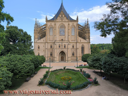 Catedral de Santa Bárbara Kutná Hora |  Para subir a la parte alta donde se encuentra la catedral de Santa Bárbara GPS N 49.944911 E15.2623325 . Para llegar cogemos el bus 801 o 803 que nos deja cerca.  Desde fuera se muestra imponente la catedral gótica con unas bóvedas monumentales.  El interior es de estilo gótico tardío y renacentista. Como elementos decorativos tiene un retablo con un políptico que muestra una escena de la última cena.  La catedral es de tres naves con una girola que rodea todo el ábside con capillas de diferentes estilos, en algunas se conservan los frescos góticos y otro son barrocos.  La Catedral de Santa Bárbara (Chrám svaté Barbory) es el monumento más emblemático de Kutná Hora y uno de los templos góticos más importantes de Europa Central. Está dedicada a Santa Bárbara, patrona de los mineros, lo cual refleja la estrecha relación de la ciudad con la minería de plata que le dio prosperidad en la Edad Media.  Su construcción comenzó en 1388, impulsada por la pujanza económica de la ciudad, con la intención de rivalizar con la catedral de San Vito en Praga. Los primeros trabajos siguieron el estilo gótico radiante francés, con participación de arquitectos alemanes y bohemios. Tras interrupciones por falta de recursos y las guerras husitas, las obras se retomaron en distintas fases, hasta ser concluidas a comienzos del siglo XX.