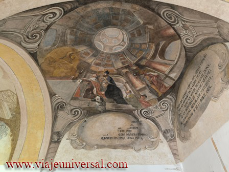 Frescos de la Catedral de San Lorenzo en Voghera (Italia) |  El retablo que representa el triunfo de San Miguel sobre el espíritu del abismo es obra del pintor alejandrino Francesco Mensi, encargado a sus expensas en 1838 por el canónigo. Pezzani junto con la Virgen entre dos ángeles orantes, colocados en el mismo altar y reemplazados en los años 1950 por la Virgen de Pompeya de Mario Maserati.  Las decoraciones de estuco y los motivos ornamentales fueron creados por Archimede Albertazzi. Las velas de la bóveda fueron pintadas al fresco en 1953 por Primo Lovagnini con los siguientes temas: San Bovo a caballo, El viaje de Tobías con el arcángel Rafael, La Virgen Inmaculada, San Pío V.  Capilla del Sagrado Corazón o de Santa Teresa del Niño Jesús, fue diseñada por el arquitecto. Ambrogio Annoni, fue construida en los años 1925-27, en el área que ya ocupaba la capilla de Santa Espina. De forma octogonal, con cúpula octogonal, retoma el motivo de la cúpula y está adornada con grafitis internos y externos, realizados en 1929 por Archimede Albertazzi.  Antes de marcharnos no podemos dejar de ver la Iglesia de San Rocco (GPS N 44.9916269 E 9.0049129), Via Carolina Agata Bellocchio, 9, 27058 Voghera PV.