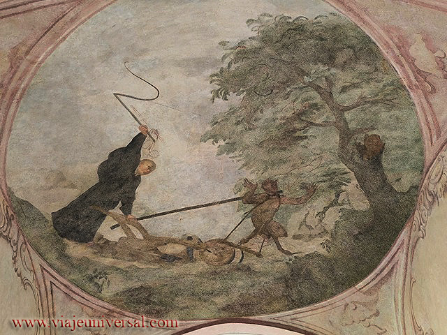 Frescos del Monasterio de Sázava |  Los frescos son uno de los tesoros artísticos más valiosos y a la vez menos conocidos de toda Bohemia. Se conservan principalmente en la sala capitular, un espacio que data del siglo XIV, y constituyen un ejemplo excepcional de la pintura mural gótica en la región.  Los murales representan escenas bíblicas, figuras de santos y elementos decorativos que servían tanto de instrucción religiosa como de ornamentación para la vida monástica. A pesar de los daños sufridos a lo largo de los siglos —incendios, guerras y abandono tras la disolución del monasterio en 1785—, todavía pueden apreciarse fragmentos con colores vivos y trazos expresivos que revelan la calidad artística de sus autores.  Especialmente notables son las representaciones ligadas a San Procopio de Sázava, el fundador espiritual del lugar. Algunas escenas muestran episodios de su vida y milagros, subrayando la importancia que tuvo el monasterio como centro de espiritualidad eslava y como símbolo de identidad religiosa antes de la plena latinización del culto.