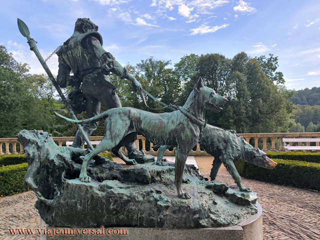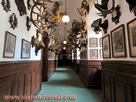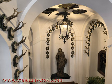 Pabellón de caza Castillo de Konopište |  Decidimos seguir nuestro camino hasta nuestro siguiente destino el castillo de Konopiste, se encuentra a 40 km de Praga y se nota que forma parte del turismo que acude en masa a la capital.  El parking de Konopiste es muy amplio y tiene sitio para las autocaravanas, aunque sin servicios, precio 300 coronas (12.33 euros) por 24 horas GPS N49.783163 E14.660440 .  El castillo era propiedad de Francesco Ferdinando, que lo utilizaba como palacio para la caza y está afición se puede ver en todos los rincones del palacio y jardines. La leyenda cuenta que llegó a matar más de 300.000 animales.  Este castillo es del Patrimonio de Estado y funciona con las mismas reglas de los anteriores que hemos visitado. Lo que me afecta, está prohibido fotografiar.  Las visitas al castillo se pueden hacer en diferentes tours e idiomas. Nosotros sacamos el tour guiado por las habitaciones barrocas y el pasillo de caza, precio 240 coronas, en checo.  Somos pocos en el grupo lo que dificulta la posibilidad de fotografiar, aún así, no desaprovechó las pequeñas oportunidades.