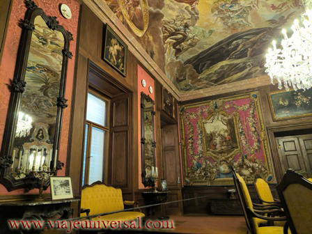 Salón del Castillo de Konopište |  El castillo de Konopište GPS N49.7794783 E14.6552312, situado cerca de la ciudad de Benešov y a unos cincuenta kilómetros al sureste de Praga, es una de las residencias aristocráticas más célebres de la República Checa. Su origen se remonta a finales del siglo XIII, cuando fue concebido como una fortaleza gótica al estilo francés, con torres circulares y un foso defensivo. Con el paso de los siglos, la función militar fue perdiendo importancia y el castillo comenzó a transformarse en una residencia señorial, adquiriendo en el siglo XVIII un aire barroco y más confortable. El momento más destacado de su historia moderna llegó a finales del siglo XIX, cuando se convirtió en la residencia del archiduque Francisco Fernando de Austria-Este, heredero al trono del Imperio austrohúngaro, cuya muerte en Sarajevo en 1914 desencadenó la Primera Guerra Mundial.  Francisco Fernando adaptó Konopište a sus gustos, combinando la elegancia aristocrática con sus pasiones personales. El castillo es célebre por albergar una de las mayores colecciones privadas de armas y armaduras de Europa, así como por la desmesurada cantidad de trofeos de caza que decoran sus salas y pasillos. Se calcula que el archiduque llegó a cazar más de trescientos mil animales a lo largo de su vida, y miles de ellos están todavía expuestos en el castillo, convirtiéndolo en una muestra sorprendente de la mentalidad y aficiones de la nobleza de la época. Además de la armería y las colecciones, los visitantes pueden admirar los interiores elegantes, la capilla de San Jorge con su rica decoración, tapices, porcelanas, muebles históricos y cuadros que reflejan el estilo de vida aristocrático de los siglos XVIII y XIX.