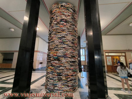 La Biblioteca Municipal de Praga (Mestská knihovna v Praze) se ha convertido en una atracción turística de moda en los últimos años, especialmente gracias a su instalación artística conocida como "Idiom" o la "Columna del Conocimiento". Esta estructura circular, compuesta por 8.000 libros dispuestos en espiral y rodeada de espejos, crea una ilusión óptica que da la sensación de una torre infinita de libros. Instalada en el vestíbulo de la biblioteca en 1998 por el artista eslovaco Matej Krén, ha ganado popularidad en plataformas como TikTok, donde los videos de la instalación han acumulado millones de vistas. Este fenómeno viral ha atraído a numerosos turistas, generando filas frente a la entrada de la biblioteca para admirar la obra