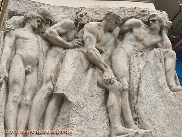 Esculturas de la fachada de la Biblioteca Municipal en Praga |