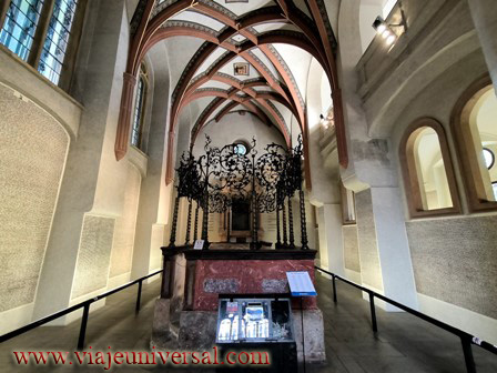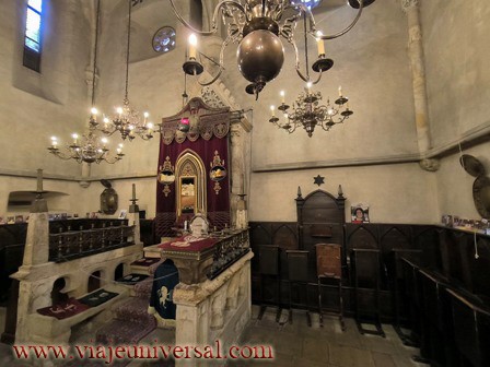 Comenzamos el circuito por la Sinagoga Vieja Nueva o Staronová Synagoga GPS N50.0899322 E14.4176983, es la más antigua se asemeja a un templo gótico cristiano con unas columnas en forma de palmeras.
