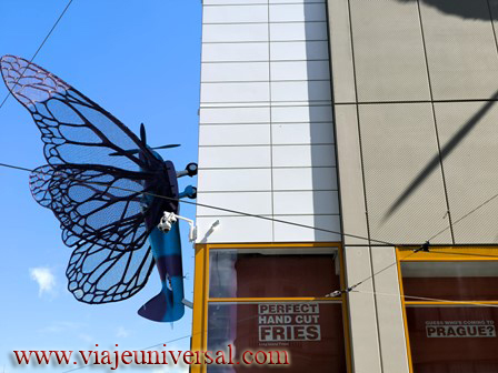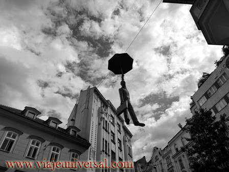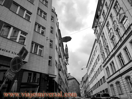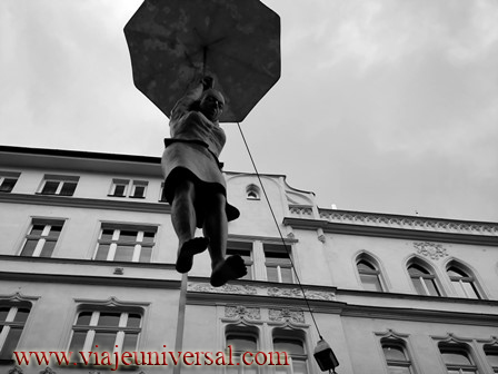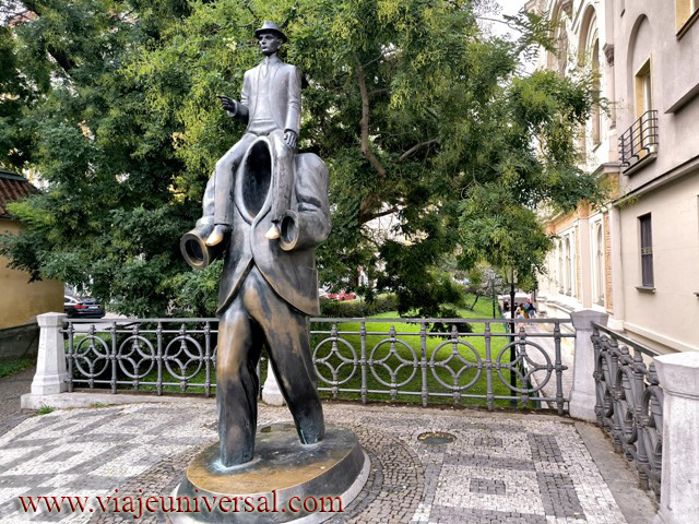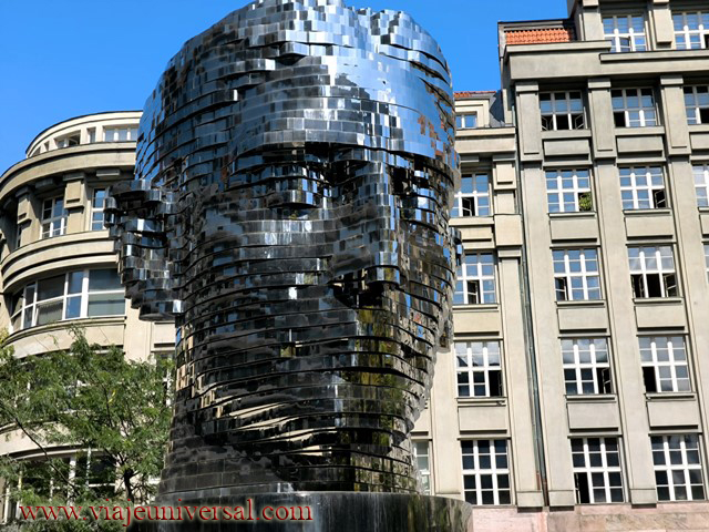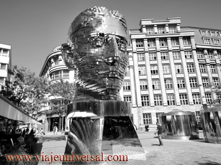 Muy cerca de la sinagoga de los Españoles está el Monumento a Kafka o Socha Franze Kafky GPS N50.0859003 E14.4097533, situada en la calle Duni.