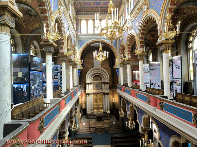 Por último vamos a la Sinagoga de los Españoles GPS N50.0901513 E14.4182716, dicen que es la más bonita del mundo. La verdad que tiene reminiscencias del arte español: vitrales, arcos, cuarterones de estilo morisco.