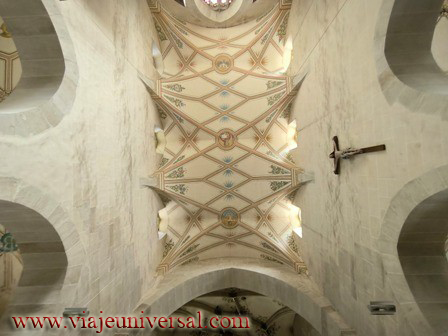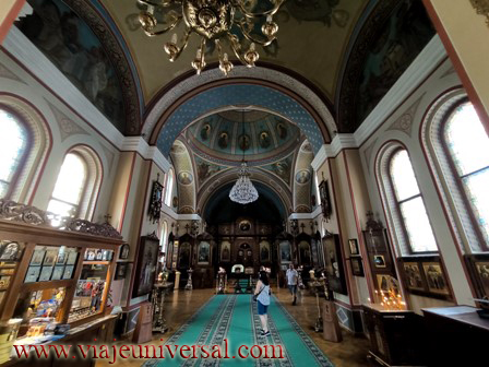 El verdadero impacto llega al entrar cada pared está recubierta por un elaborado tapiz de arabescos dorados y policromados, con patrones geométricos que evocan a la Alhambra de Granada y otros monumentos islámicos de la península ibérica. Las vidrieras de colores filtran la luz con tonalidades suaves, creando un ambiente cálido y místico. El techo abovedado y pintado en azul profundo, decorado con estrellas doradas, refuerza la sensación de estar bajo un cielo ornamental.