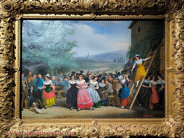 En el contexto del Museo este tipo de obra o representación no se centra solo en el paisaje, sino en la dimensión humana y social de la vendimia. Las escenas suelen mostrar grupos de hombres y mujeres trabajando juntos en los viñedos, cortando racimos de uva, transportándolos en cestas o prensándolos.