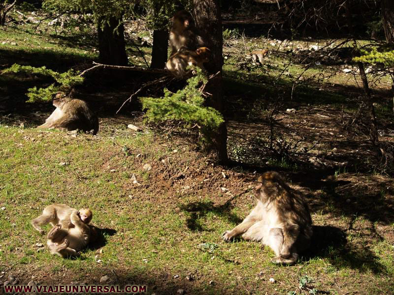 Macacos Jugando en el Bosque de Cedros en Azrou, Marruecos