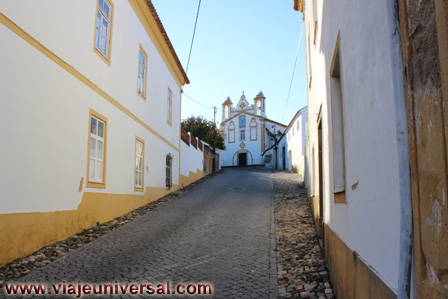 Por una empinada calle traspasamos la muralla que rodea a toda la ciudad, en su interior salvamos dos puertas para acceder intramuros a un pueblo escrupulosamente blanco, la ultima es conocida como Porta da Villa, en el interior sus casas todavía conservan su aspecto medieval, las calles son empinadas, estrechas y tortuosas, algunas se acceden mediante escaleras con las típicas ventanas y las curiosas chimeneas alentejanas, muchas tienen sus arcos de piedra apuntados describiendo unos rincones pintorescos.