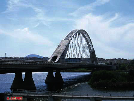 Lusitania). EL Puente de Lusitania fue construido entre 1988 y 1991, sobre el río Guadiana, tiene 478 metros, esta sujeto por un arco de acero de 34 metros, fue construido como una unidad sin añadidos, su suelo ha sido diseñado como paso para transeúntes y bicicletas, además dispone de dos vías para vehículos con una gran amplitud visual.
