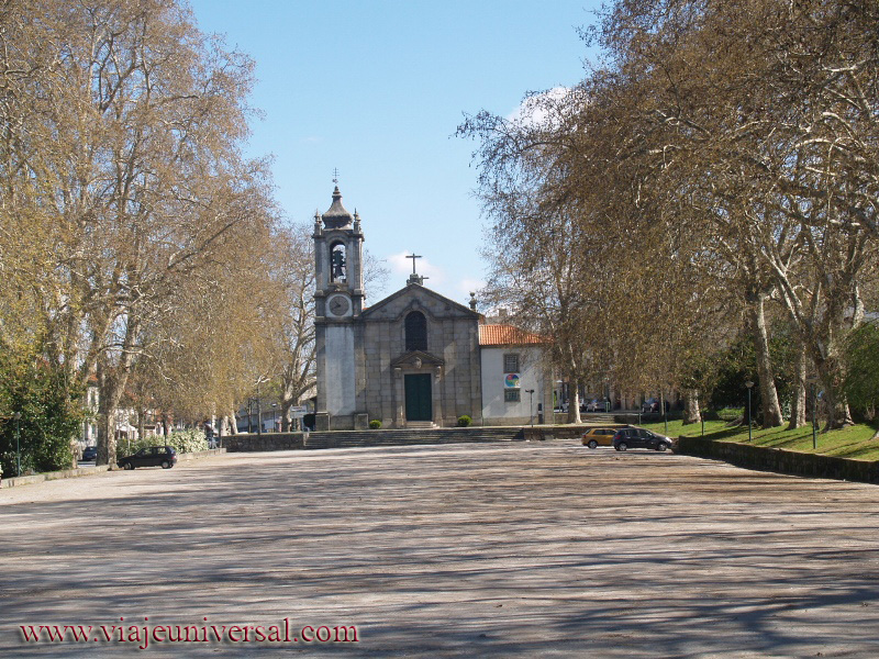 El presbiterio tiene un notable retablo dorado, del escultor portugués Pedro Coelho y el techo es artesonado. La nave también está decorada con retablos de estilo portugués de finales del siglo XVII y principios del XVIII. La talla combina admirablemente con los azulejos históricos que decoran su interior. Ejecutados durante la primera mitad del siglo XVIII, se atribuyen al monograma PMP y cuentan episodios de la vida del Papa San Damaso. |