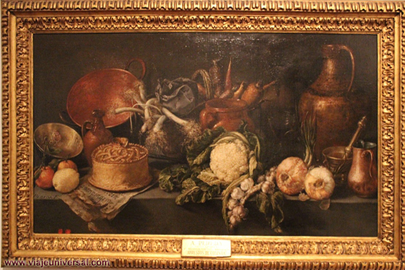 El bodegón del museo “Naturaleza Muerta con Vegetales y Utensilios de Cocina”, obra de Antonio Pereda Salgado, realizado en 1651, en óleo sobre tela; tiene unas medidas de 75 x 143 cm.