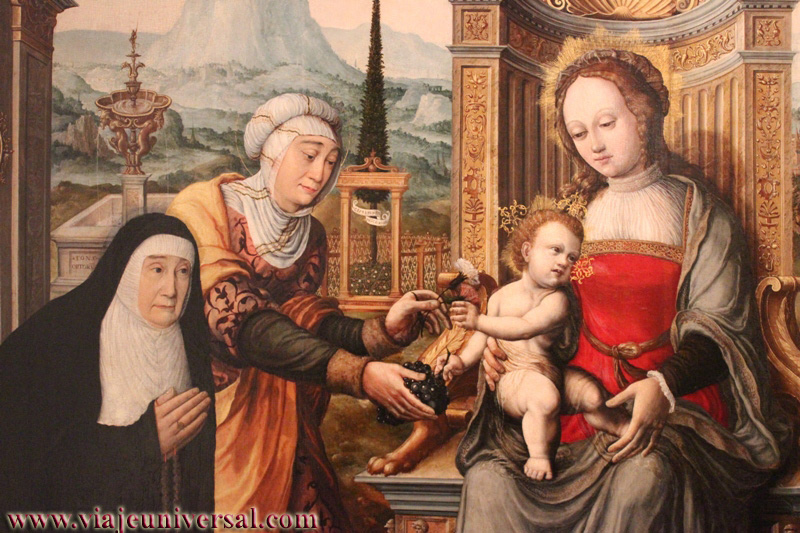 “Virgen y Niño con Santa Ana y San Joaquín con un donante”, obra de un maestro desconocido, esta datado en 1550, pintado al óleo en madera de roble, procede del Convento de la Esperanza de Lisboa; tiene unas medidas de 165 x 172,5 cm.