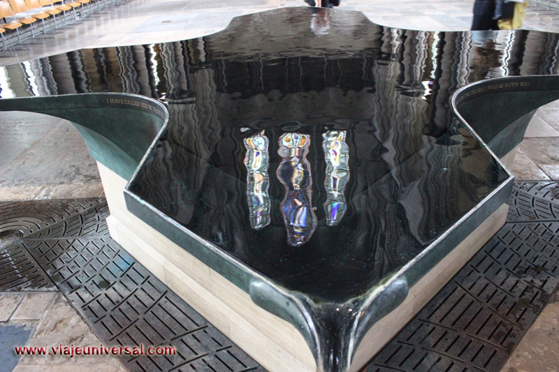 La fuente de la catedral de Salisbury se puso hace poco porque la catedral no contaba con una pila bautismal permanente. La idea de construir esta fuente modernista partió del entonces tesorero canónigo June Osborne, que pasó a convertirse en decano de Salisbury. Así, tras llegar un acuerdo todas las partes interesadas en el proyecto, el diseño fue finalmente aprobado en 2007 y en septiembre de 2008 la fuente que aquí vemos fue consagrada por el Arzobispo de Canterbury. Desde entonces se ha convertido en un símbolo más de la Catedral , siendo una gran atracción para los visitantes y turistas que la visitan.