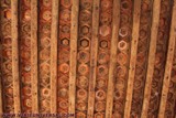 Sobre la bóveda hay un artesonado de madera con tablas policromadas donde se decoran con escudos heráldicos y armas de las fundadoras, obra del siglo XIV.