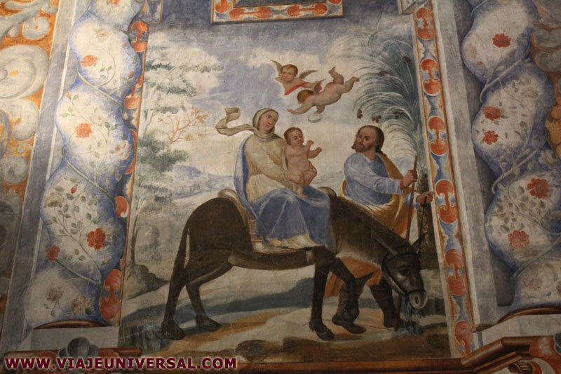 En las paredes se decoraron con dos sargas –grandes lienzos pintados a modo de tapices– que representan “La Caída” y “La Crucificación”.